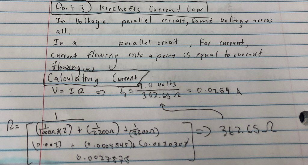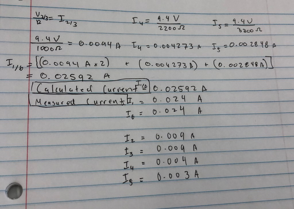 - When measuring the current with the resistors in parallel, I used a 330 Ω resistor instead of a 3300 Ω resistor (they have very similar color coding)